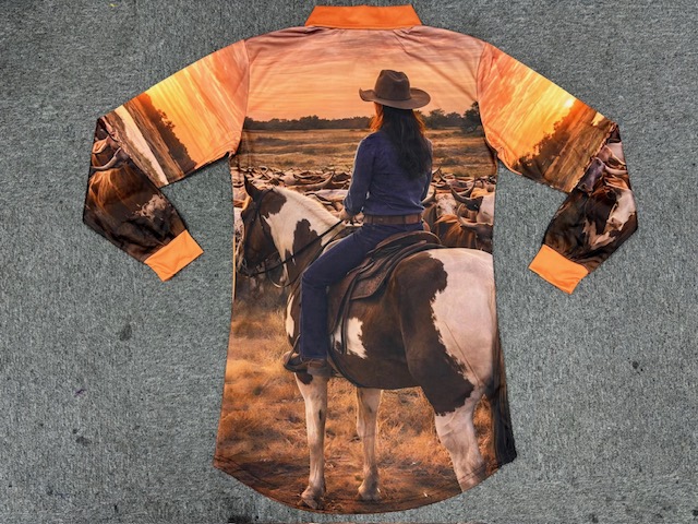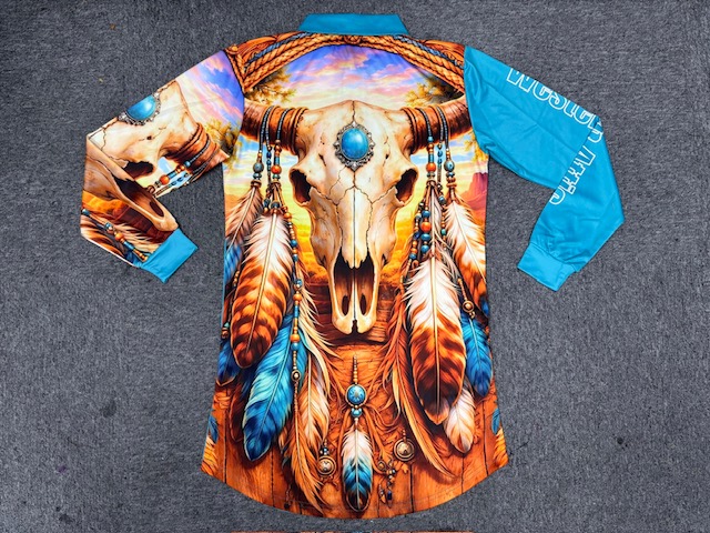 Australiana fishing shirt with galahs and cockatoos
