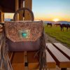 Tooled adjustable shoulder strap.