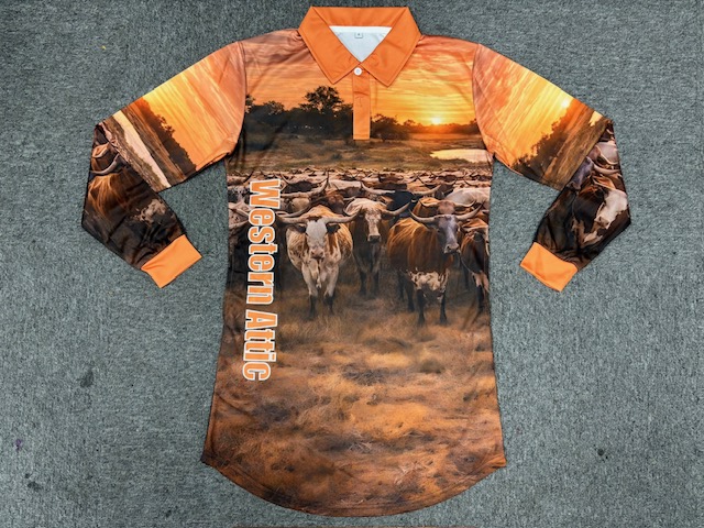 Australiana fishing shirt with galahs and cockatoos