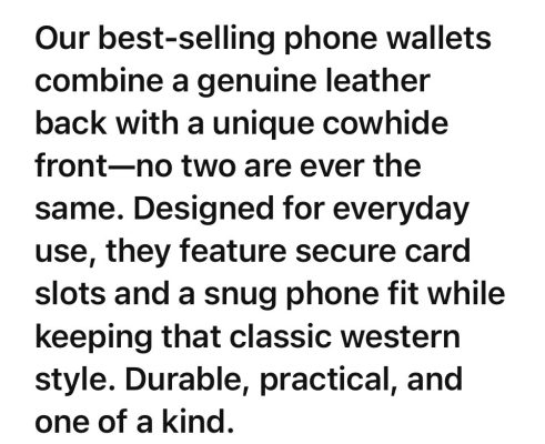 | Phone wallets | brown&white, tan&white, black&white |