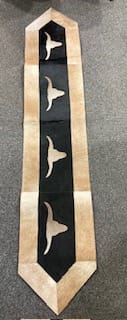 stunning cowhide tablerunner with leather back, will enhance any dining table.